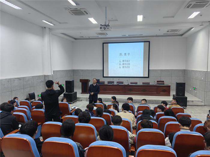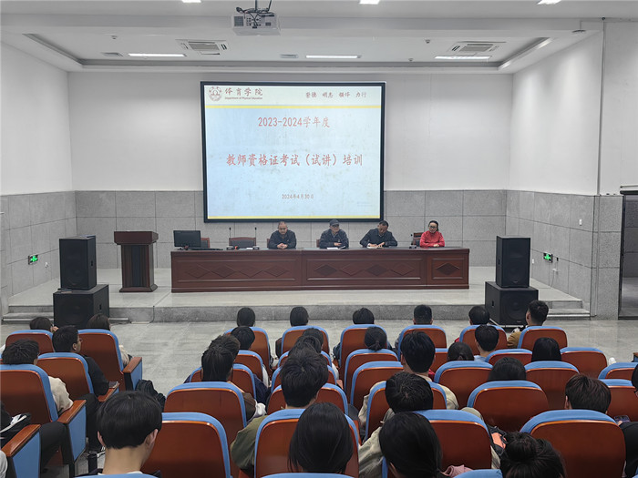 本次讲座我院诚邀宿州学院附属实验中学的高级教师梅学艳、宿城第一中学高级教师范浩、宿州市埇桥区教育体育局教研人员、高级教师郭强三位教师为学生进行教师资格证考前面试技巧培训辅导,院长白明强调了教师资格证考前(面试)指导对学生而言十分重要,希望同学们能够珍惜这次培训的机会认真学习并顺利通过面试。