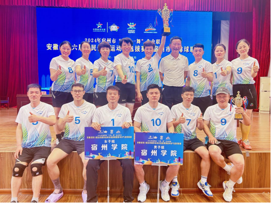 5月24日至26日,由宿州市教育体育局主办、宿州市排球运动协会承办,安徽省煤田地质局水文勘探队协办的2024年宿州市“六球一舞”业余联赛安徽省第六届全民健身运动会选拔赛暨宿州市气排球联赛气排球比赛在安徽省煤田地质局水文勘探队举行。来自宿州市14支代表队,近150名运动员参加比赛。在院党委的关心和支持下,宿州学院教职工代表队共16名运动员参加了此次比赛。经过两天的激烈角逐,我院代表队获得女子组第一名,男子组第三名的好成绩。
