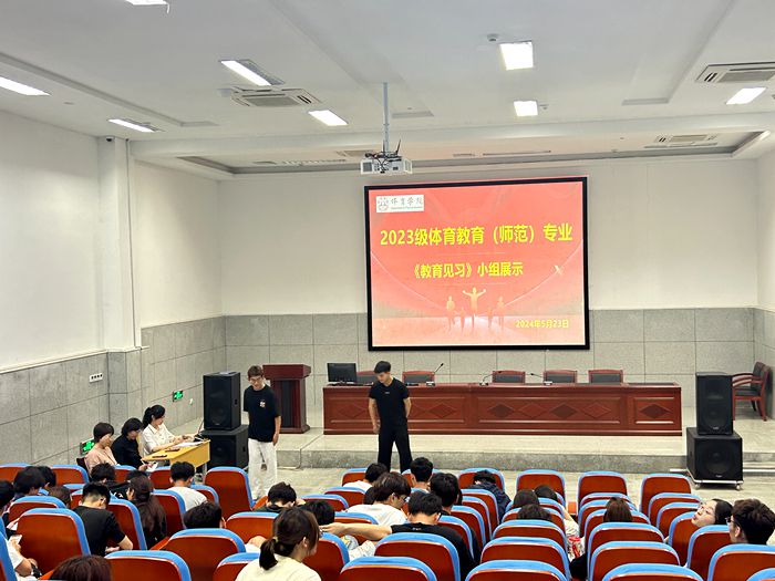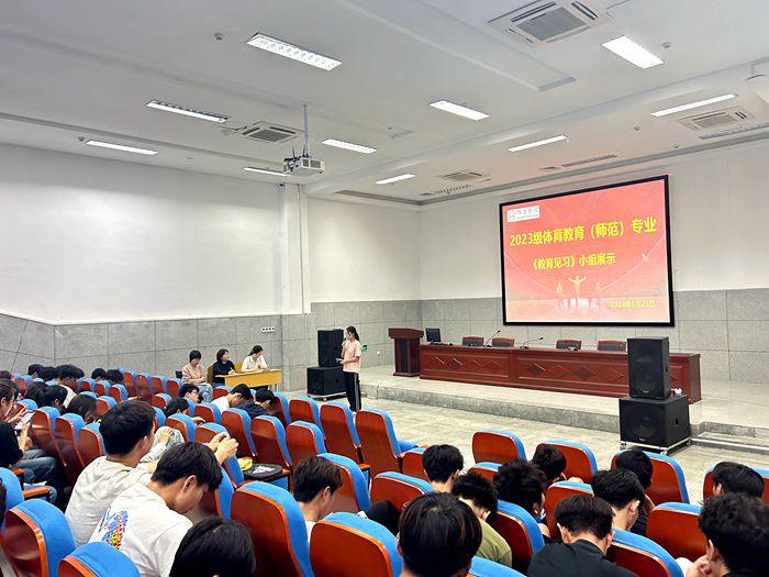 为提高学生的专业认知度,增强学生专业实践创新意识,丰富实践经验,提高人才培养质量,体育学院于5月23日开展了2023级体育教育(师范)专业《教育见习》小组展示活动。