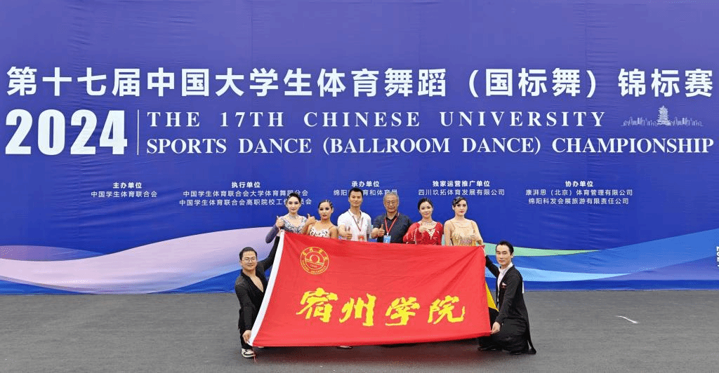 近日,第17届中国大学生体育舞蹈(国标舞)锦标赛在四川省绵阳市举办,宿州学院体育舞蹈代表队在第17届中国大学生体育舞蹈锦标赛中取得了1金1银以及1项第5名的优异成绩。
