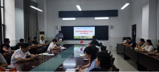 2024年6月28日上午9时,宿州学院体育学院教职工大会2023年年会在体育馆会议室开幕。体育学院全体教职工参加会议,会议由体育学院党委书记李高主持。