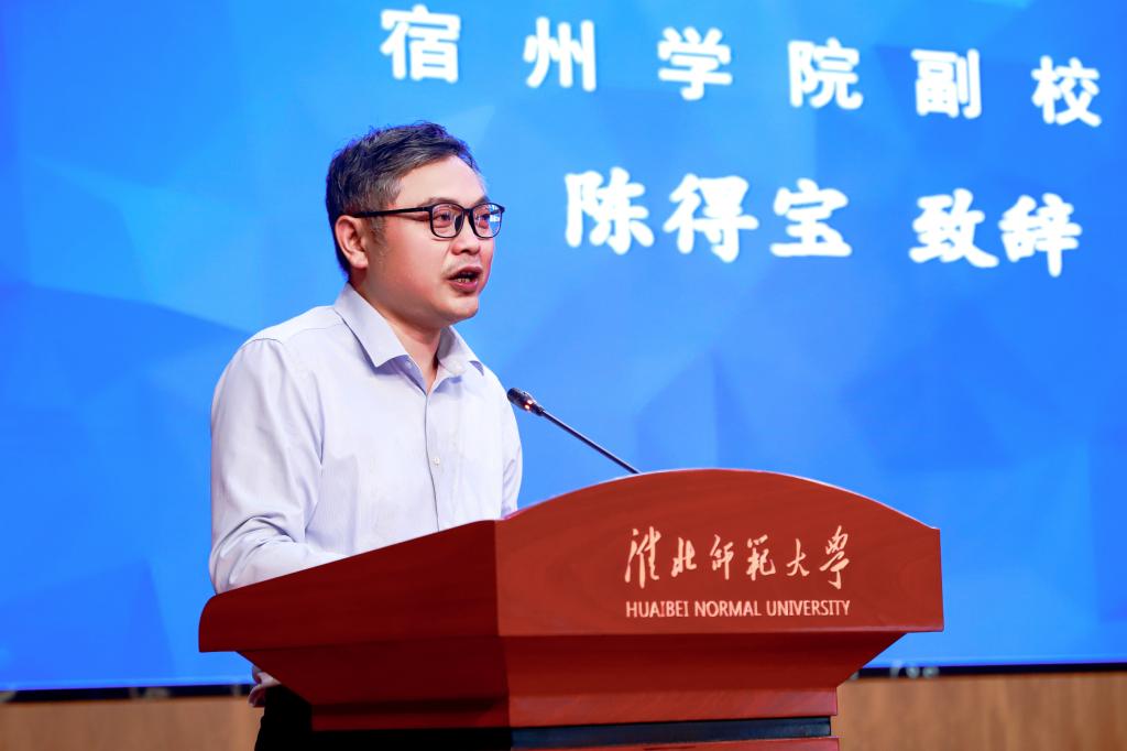 陈得宝介绍了宿州学院在地方性应用型办学道路上的探索与成就,强调学校紧密对接地方发展需求,为区域经济社会发展贡献力量;锚定建成硕士学位授予单位、建设特色鲜明的地方应用型高水平大学两个目标,统筹推进教育、科技、人才三位一体融合发展;学院面向产业链优化专业链、围绕专业链配置人才链、紧扣创新链打造“科创牌”持续深化产教融合、科教融汇,初步探索出了一条集聚资源、协同创新、服务地方、融合发展的开放办学之路。
