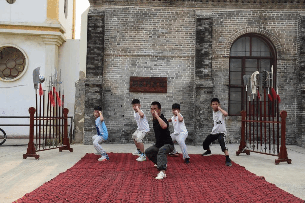 胡家门武馆:胡门武术在胡敬章、胡立杭两代武术人的不断摸索、改进、融会贯通,让胡氏武馆不断壮大。米师傅向我们讲解到,胡家门最初练武是为了保卫自家土地不受侵扰,大约300多年前黄河改道,黄泛区及故道两岸的盐碱地都大量空出,让人们有了更多的农耕地,砀山县接收了大量的其他地区的难民,难民里有从北方逃难而来的民间武师带来新的拳种,如大红拳、小红拳、查拳、炮拳、螳螂拳等,促进了尚武之风的延续,胡家门武馆也就在那时发展起来了。随后,米师傅带领他的小徒弟门给我们展示了胡家门的拳种。