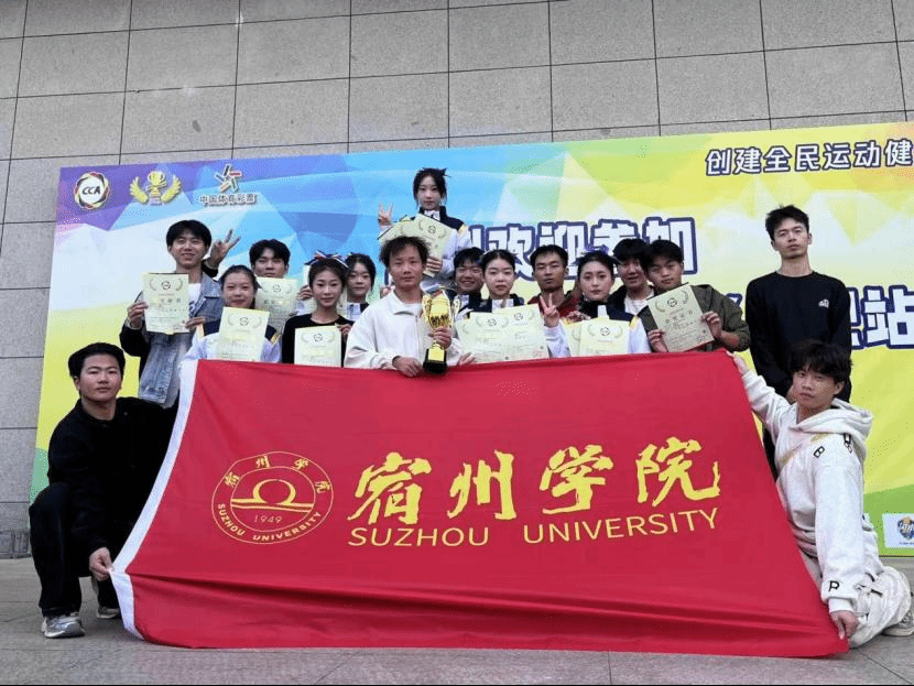 汇聚体育荣耀,传承奉献精神。10月20日,在国家体育总局体操运动管理中心与中国蹦床与技巧协会联合举办的“2024年全国啦啦操联赛(合肥站)”,我校15名啦啦操运动员在宿州学院和体育学院领导的支持下,凭借精湛技艺和顽强拼搏精神,获得2024年全国啦啦操联赛(合肥站)青年甲组-集体技巧(2级)自选第一名、青年甲组-混合双人配合技巧第二名、青年甲组-小团体配合技巧第二名、青年甲组-小团体配合技巧第三名和青年乙组-小团体配合技巧第三名的好成绩。