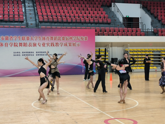 为进一步增进宿州学院体育、美育水平,提升宿州学院学科技能竞赛水平,强化体育学院舞蹈表演专业实践教学质量,2024年11月6日,由宿州学院教务处、宿州学院体育学院主办,体育学院学生会、体育学院实习实训中心、健身操舞俱乐部协办的2024年安徽省学生联赛大学生体育舞蹈比赛宿州学院校赛暨体育学院舞蹈表演专业实践教学成果展示在体育馆主馆举办。