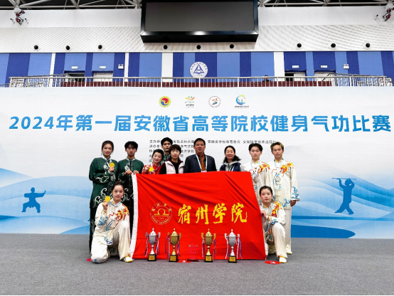 2024年11月15日至17日,由安徽省学校体育协会、安徽省社会体育指导中心主办的2024年第一届安徽省高等院校健身气功比赛在安徽职业技术学院举行,我校健身气功代表队由体育学院党委书记李高领队,在刘明龙、郭淑玲老师的指导下,带领8名运动员参加了甲组、丙组的比赛,经过两天的激烈角逐,我校代表队获得团体一等奖2项、二等奖2项,个人一等奖4项、二等奖2项、三等奖2项的优异成绩。