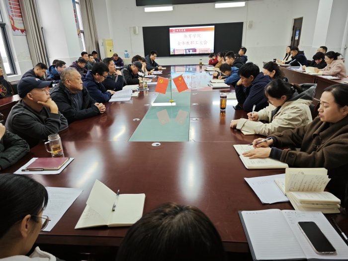 为迎接师范专业认证,推进教育教学审核评估工作,加强教师思想观念,形成上下一心、团结协作的良好氛围, 11月22日,体育学院组织召开体育学院召开全体教职工会议,体育学院党委副书记、院长白明同志主持,全体教职工参加。