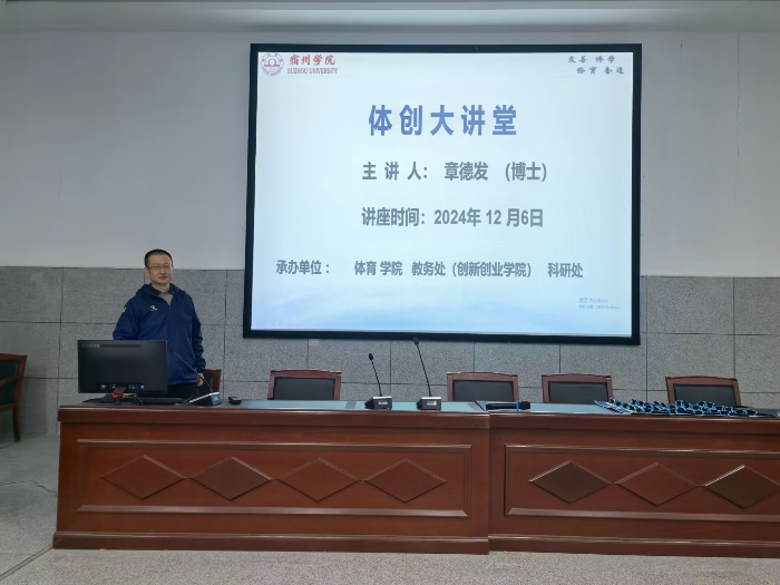 为全面贯彻落实习近平总书记关于教育的重要论述及全国教育大会精神,培养和提升大学生的创造精神、创新意识和创业能力,加强学校体育与创新创业教育的有机融合,2024年12月6日体育学院章德发博士于体育学院报告厅为宿州学院学生开展了“大学生就业多元化途径分析”的讲座。