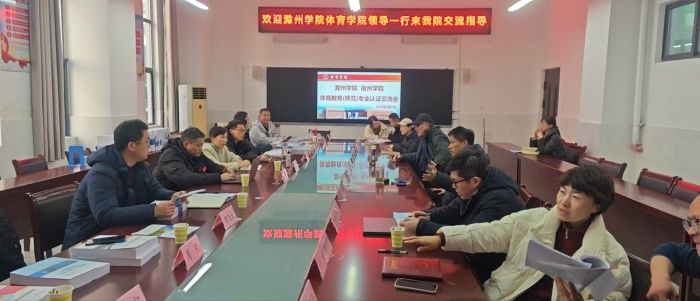 2025年3月7日,滁州学院体育学院领导一行到宿州学院体育学院开展体育教育(师范)专业认证交流,宿州学院党委副书记王俊到会指导,体育学院领导班子、体育教育专业带头人及体育教育(师范)专业认证相关负责同志参加。体育学院党委副书记院长白明主持会议。