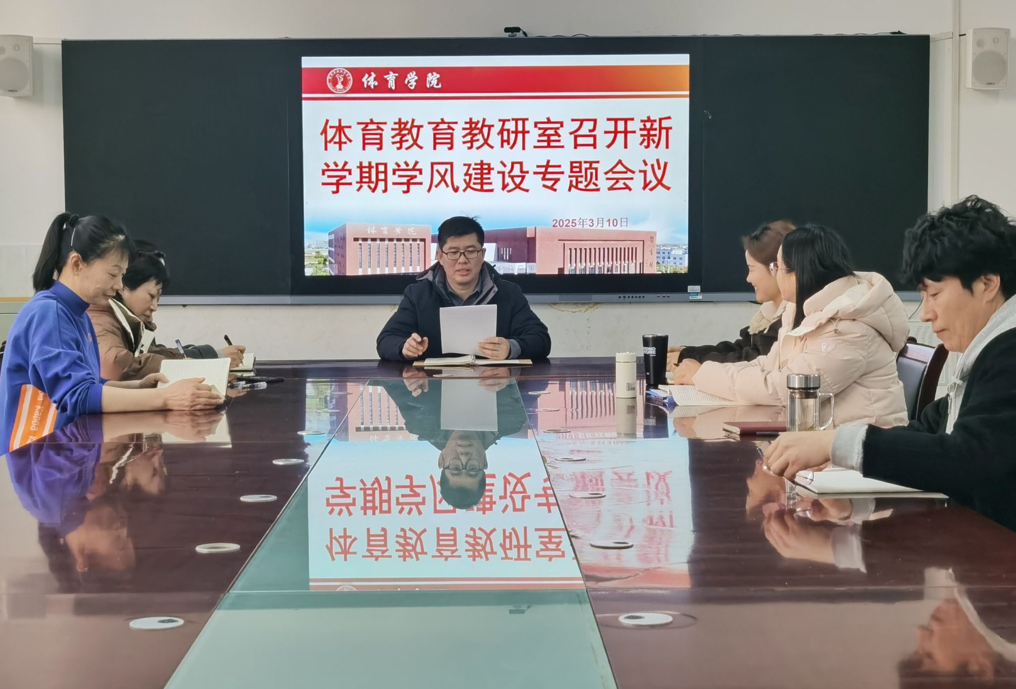 为深入贯彻落实体育学院关于学风建设的文件精神,进一步强化体育教学管理,提升教学质量,3月10日,体育教育教研室组织召开新学期学风建设专题会议。会议由教研室主任徐光辉主持,体育教育教研室全体教师参加会议。