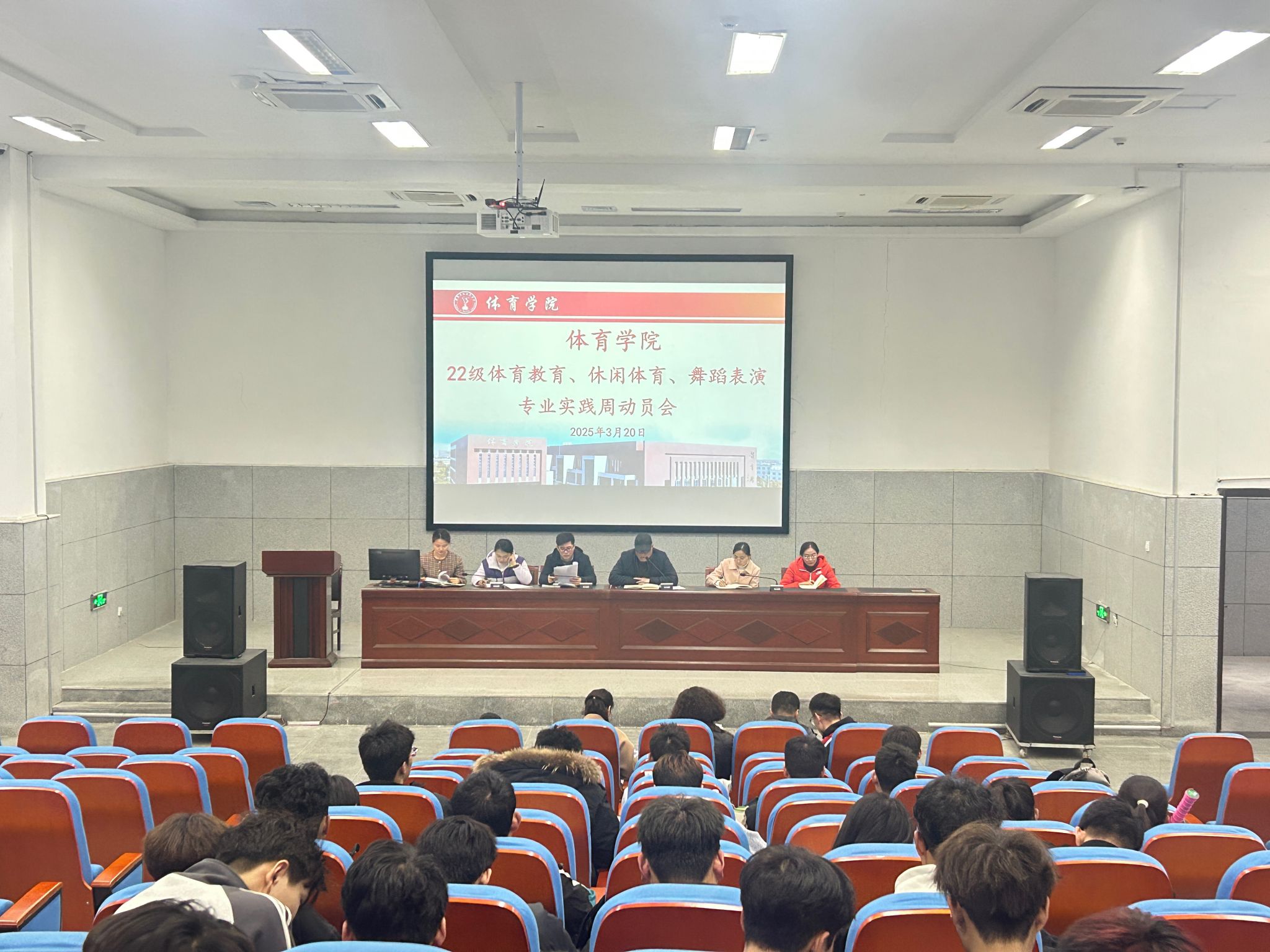为进一步做好学生实践教学工作,引导学生做好实践周前的各项准备工作,推进本学期学生实践教学工作的顺利开展,体育学院于3月20日下午,在体育馆B112多功能报告厅召开2022级舞蹈表演(体育舞蹈与健美操方向)专业、2022级休闲体育专业和2022级体育教育专业实践周动员会,体育学院党委副书记、院长白明,各专业专业负责和教研室主任、副主任,以及实习实训中心主任张丽萍、各指导教师和2022级全体学生参加了本次会议。