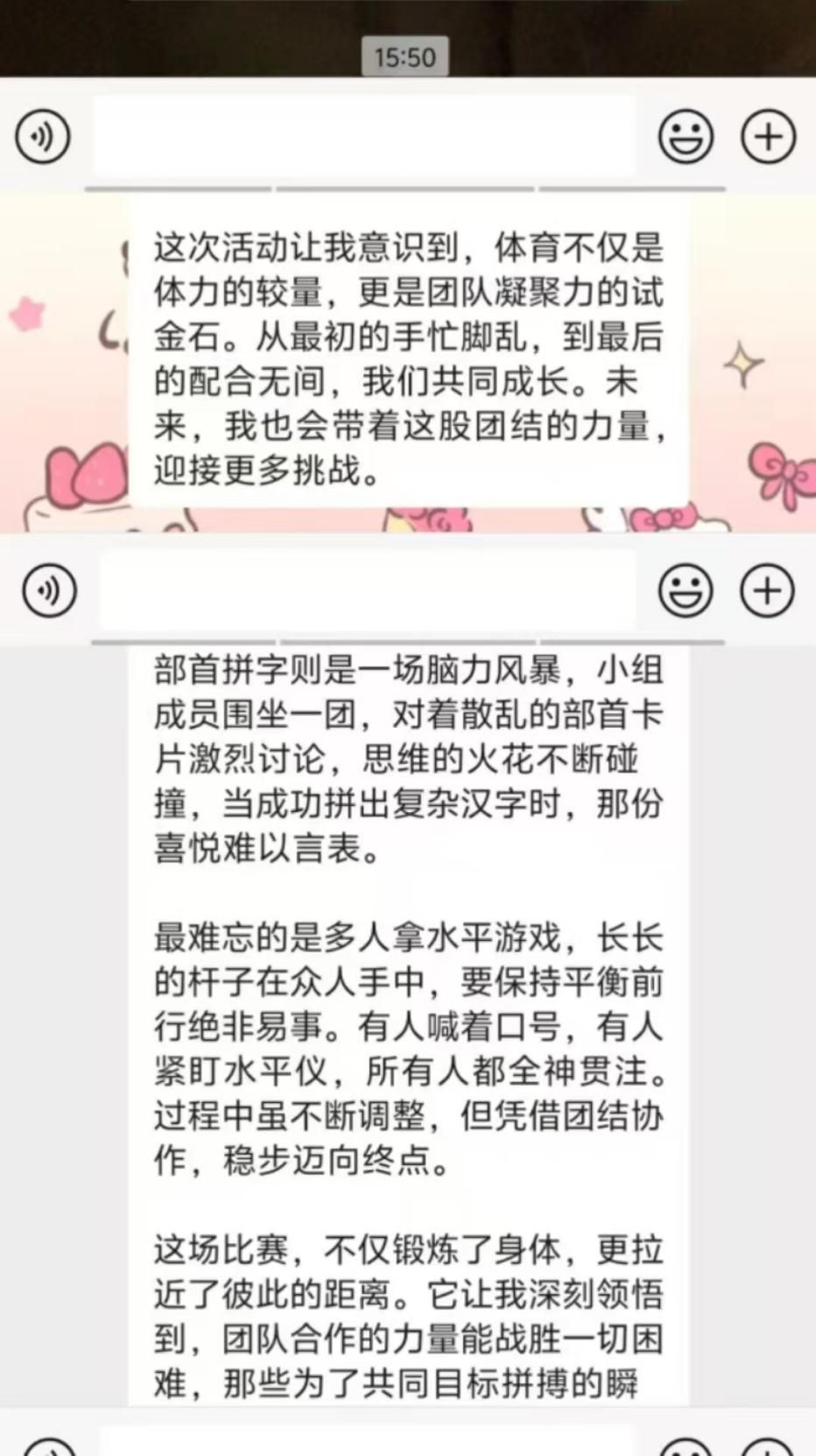 活动结束后,参与的学生纷纷表示收获颇丰。文学与传媒学院2024级王同学说:“这次活动让我意识到,体育不仅是体力活动的较量,更是团队凝聚力的试金石。从最初的手忙脚乱到最后的配合无间,我们共同成长,未来,我也会带着这股团结的力量迎接更多挑战。”张同学则表示:“体育学院的学长学姐们组织得很专业,活动规则讲解清晰,现场把控到位,让我们玩得既开心又安全。”李同学说:“在活动中,不仅让我们锻炼了身体,更拉近了彼此的距离,还让我深刻领悟到团队合作的力量能战胜一切困难。”