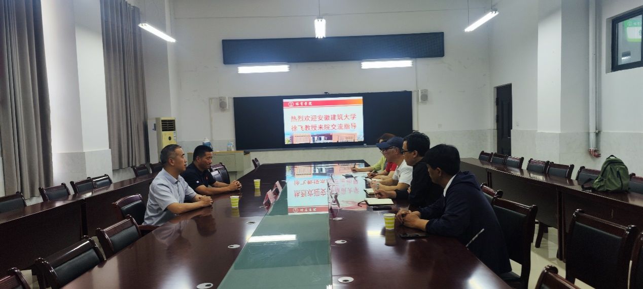 5月26日,安徽建筑大学体育教学部主任徐飞教授来院交流指导,校党委副书记、校长闵杰,学院党委副书记、院长白明,党委副书记兼纪委书记王德玉,副院长陈芳芳及各教研室主任参加,会议由白明主持。