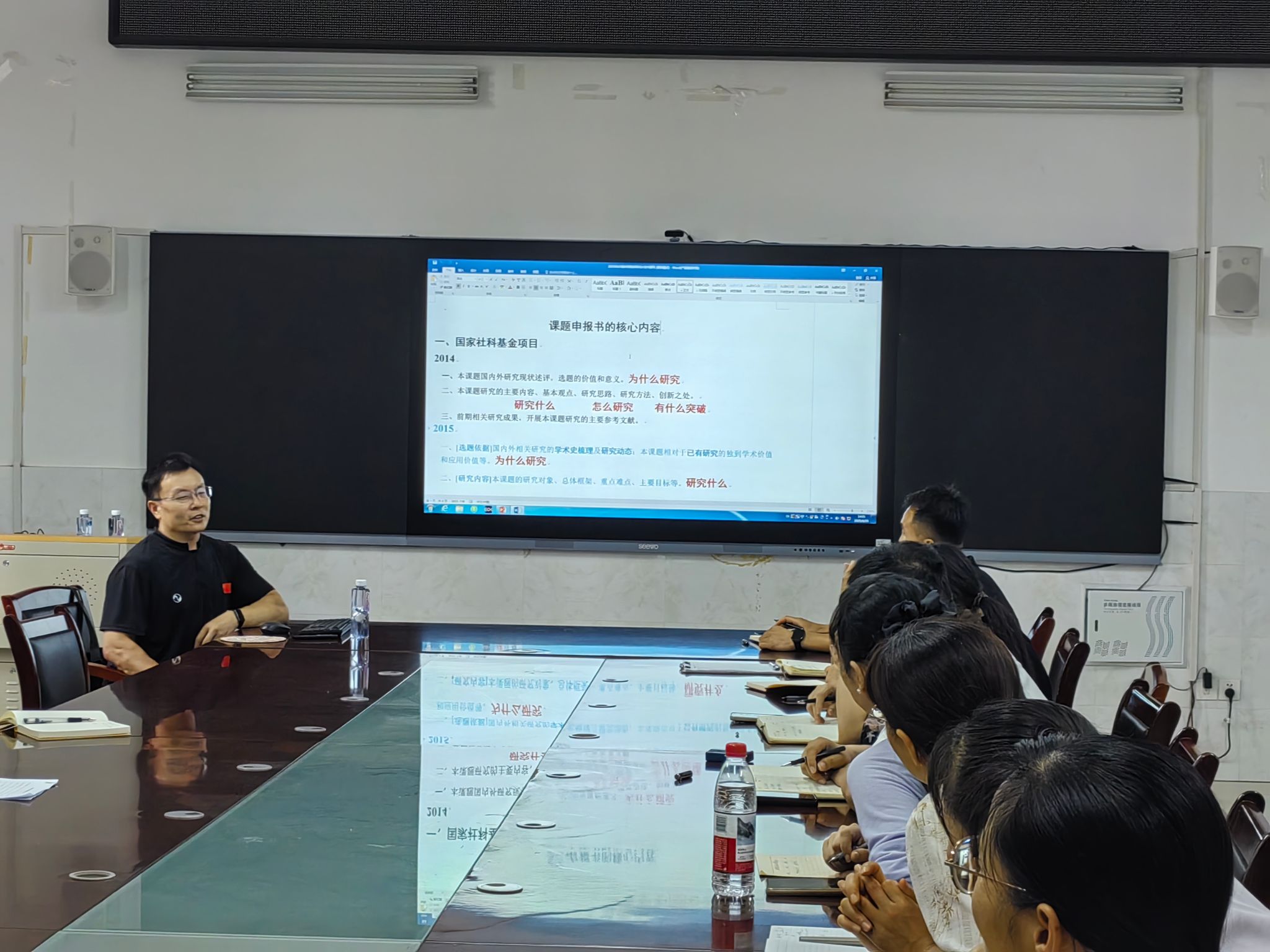 上午的讲座以《科研申报书:撰写太极拳积极对中华优秀传统文化的传承传播》为题。杨建营以其成功获批的国家社科基金项目为鲜活案例,逐项、细致、深入地剖析了高水平科研项目申报书的撰写要点、核心技巧与常见问题。他从选题价值、文献综述、研究设计、创新点到预期成果等关键环节进行了详尽解读,毫无保留地分享了宝贵的申报经验和实战心得。讲座内容详实,逻辑清晰,极具指导性和操作性,现场师生全神贯注,反响热烈,纷纷表示深受启发,对提升自身科研申报能力大有裨益。