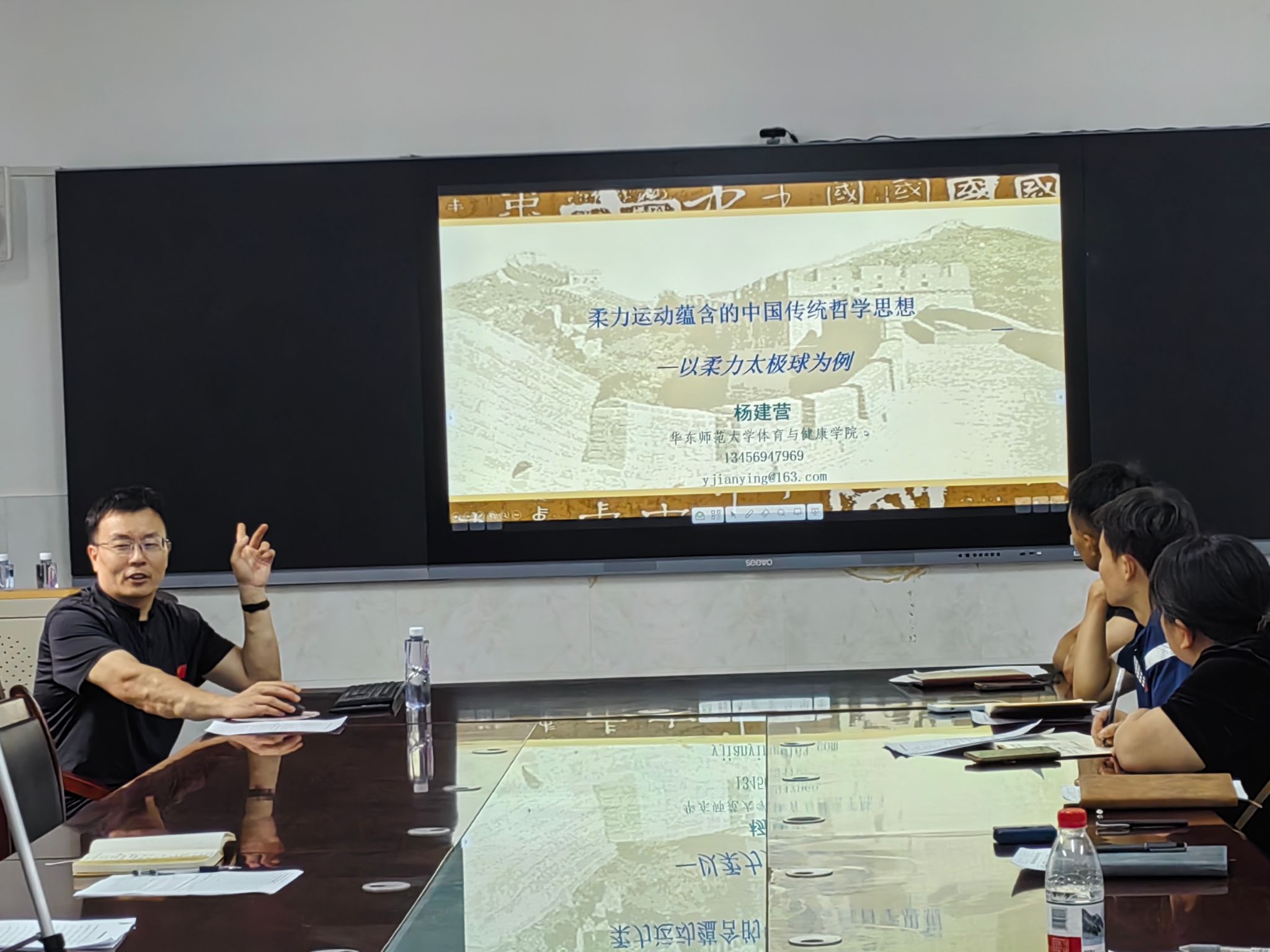 下午,杨建营以《太极球运动对中华优秀传统文化的传承传播》为题,引领师生深入探讨了这一新兴民族传统体育项目的深厚文化底蕴及其在当代传承与传播中华优秀传统文化中的独特价值与实践路径。讲座理论联系实际,深刻阐释了太极球运动蕴含的哲学思想、健身机理与文化内涵。