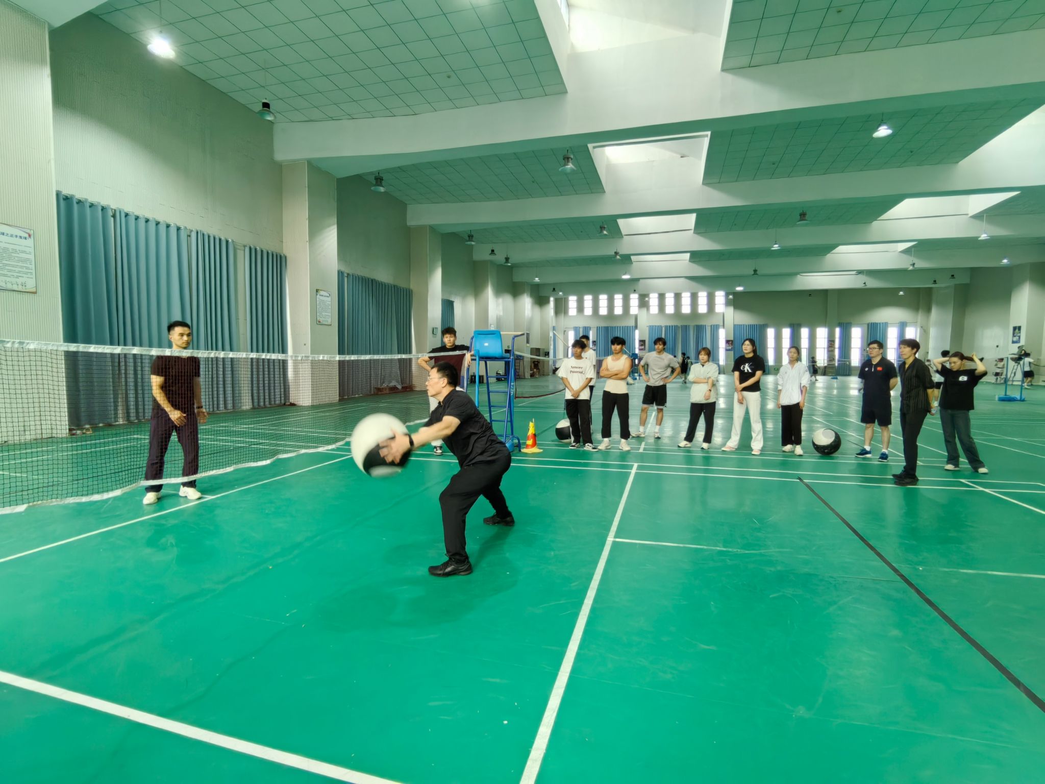 讲座结束后,师生热情不减,在体育场馆又进行了一场生动的太极球实践授课教学展示。杨建营亲自示范动作要领,讲解技术细节,并指导师生进行体验练习。现场互动积极,气氛活跃,师生们近距离感受了太极球运动的魅力,深化了对理论知识的理解。