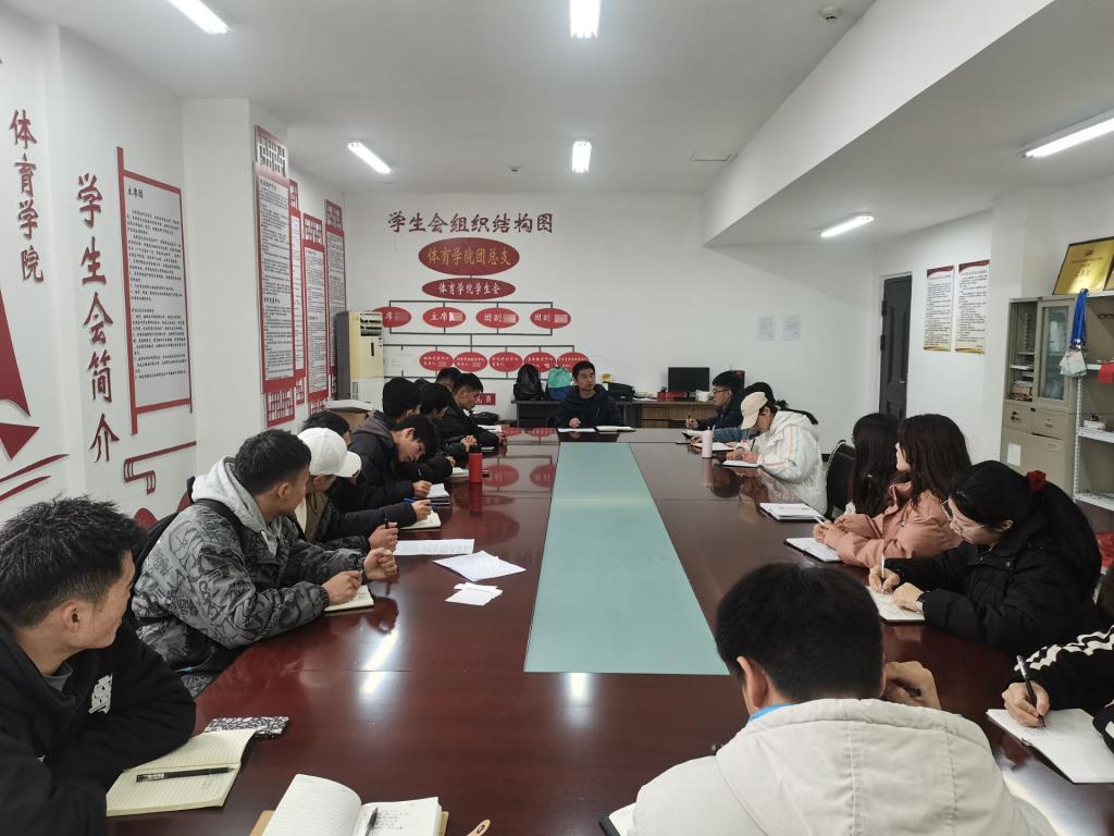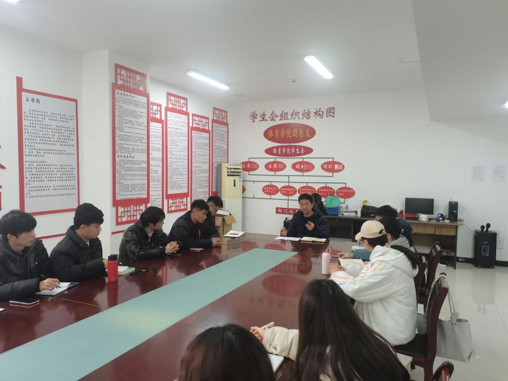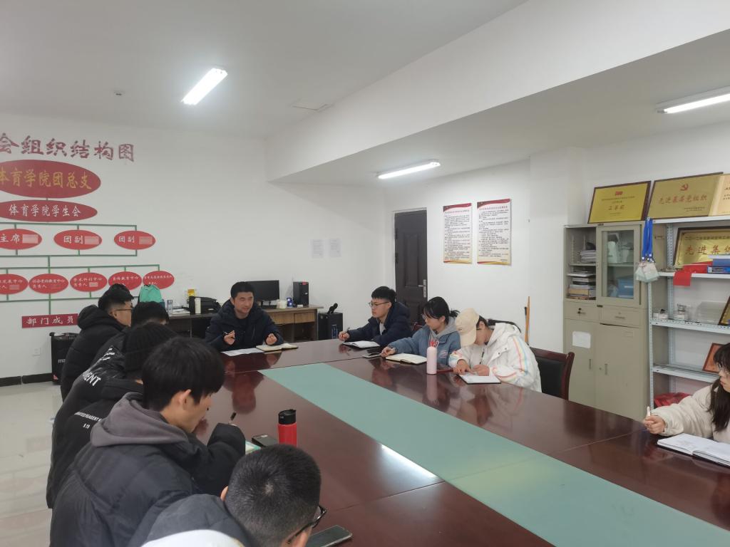 人心齐,泰山移。为提高体育学院学生会全体负责人的工作能力,发挥全体负责人的带头作用,促进体育学院学生会的发展和建设,体育学院团委于2022年2月22日中午在学生会办公室举行了本学期第一次全体负责人会议,参加此次会议的有体育学院团委书记胡杰、学生会主席团成员、学生会全体负责人以及青年志愿服务总队部长。