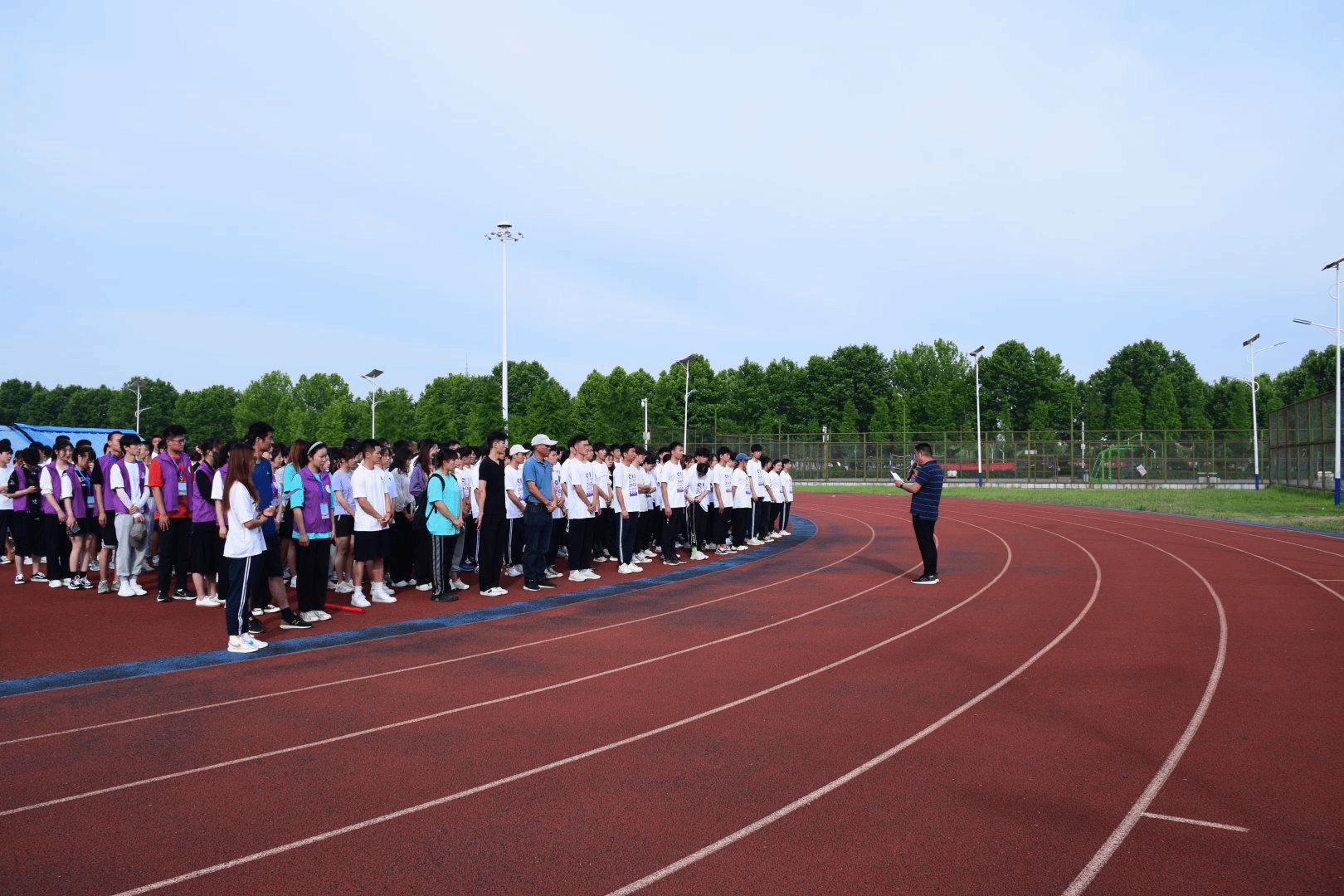 为了树立良好的价值观和世界观,增强同学们对党史的了解,培养同学们的爱国的情怀。2021年6月7日早7点,体育学院在田径场举行了“学党史,知党恩”为主题的升旗仪式。参加本次升旗仪式的有体育学院党委书记宋红军、副院长白明、团总支书记胡杰,王德育老师、以及体育学院20级学生和全体学生党员。