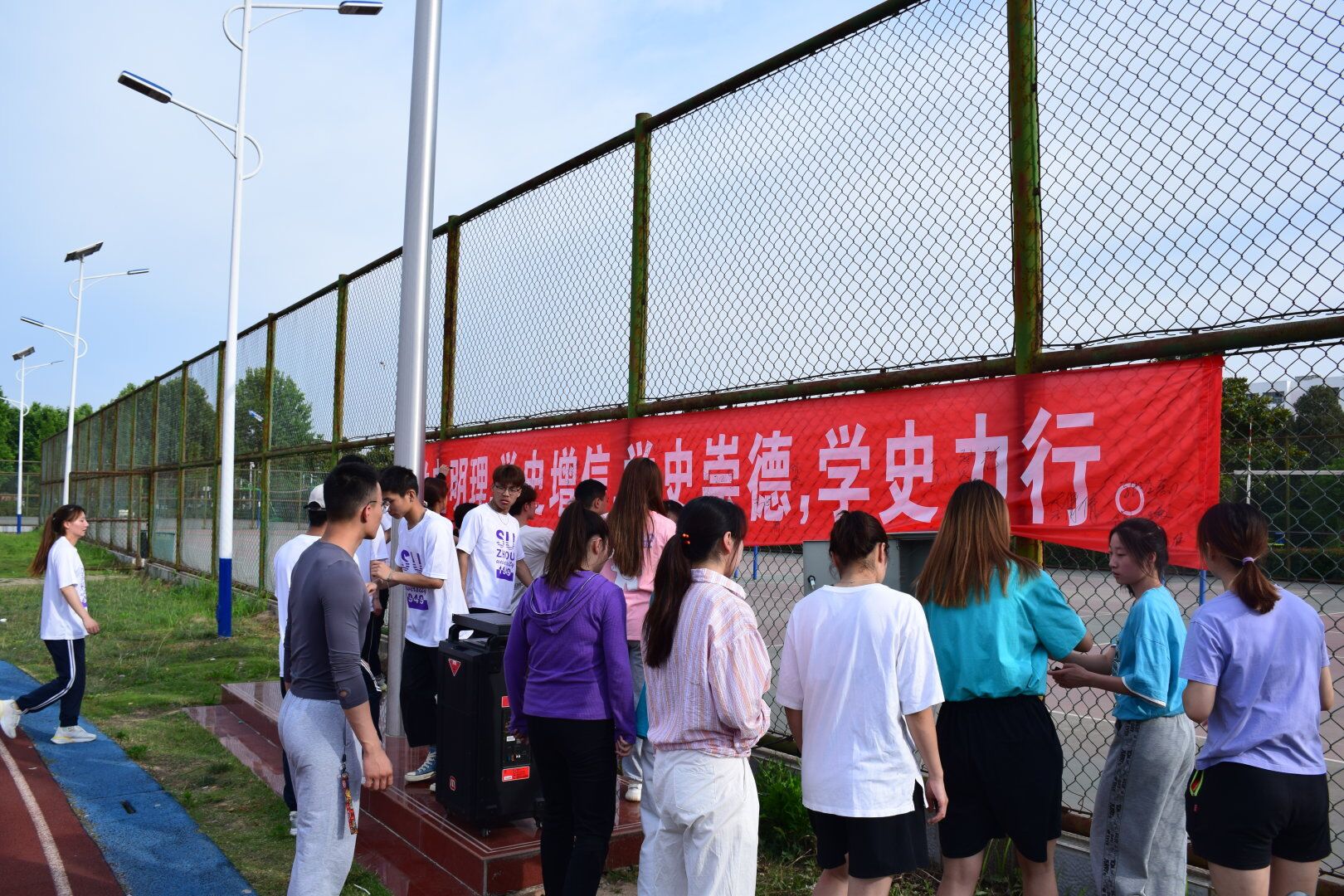 升旗仪式正式结束,同学们怀着激动的心情,井然有序地离开了操场。本次升国旗仪式增强了同学们对党史的认识,培养了同学们的爱国热情,使的同学们的学习热情和爱国热情得到了升华,也希望体育学院全体成员能够不忘初心牢记使命,紧跟党的步伐,砥砺前行。