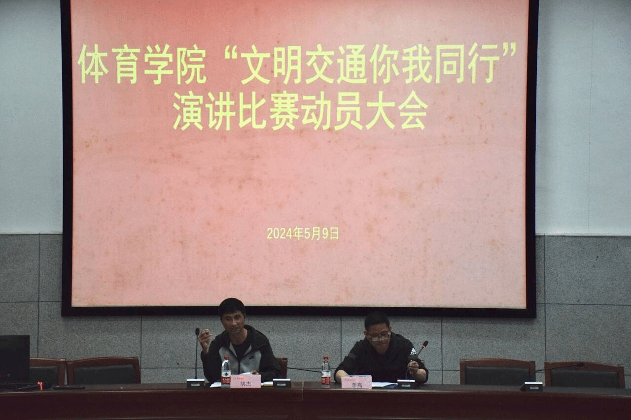为了进一步加强交通安全文化建设,提升同学们的法治意识、安全意识和文明意识,宿州市公安局交通警察支队联合宿州学院体育学院举行“文明交通你我同行”主题演讲比赛,此次比赛动员大会于2024年5月9日中午12:20分在体育学院报告厅举行。体育学院党委书记李高,团委书记胡杰,体育学院各班辅导员、班长、团支书,学生会、青总全体成员参加此次动员大会。