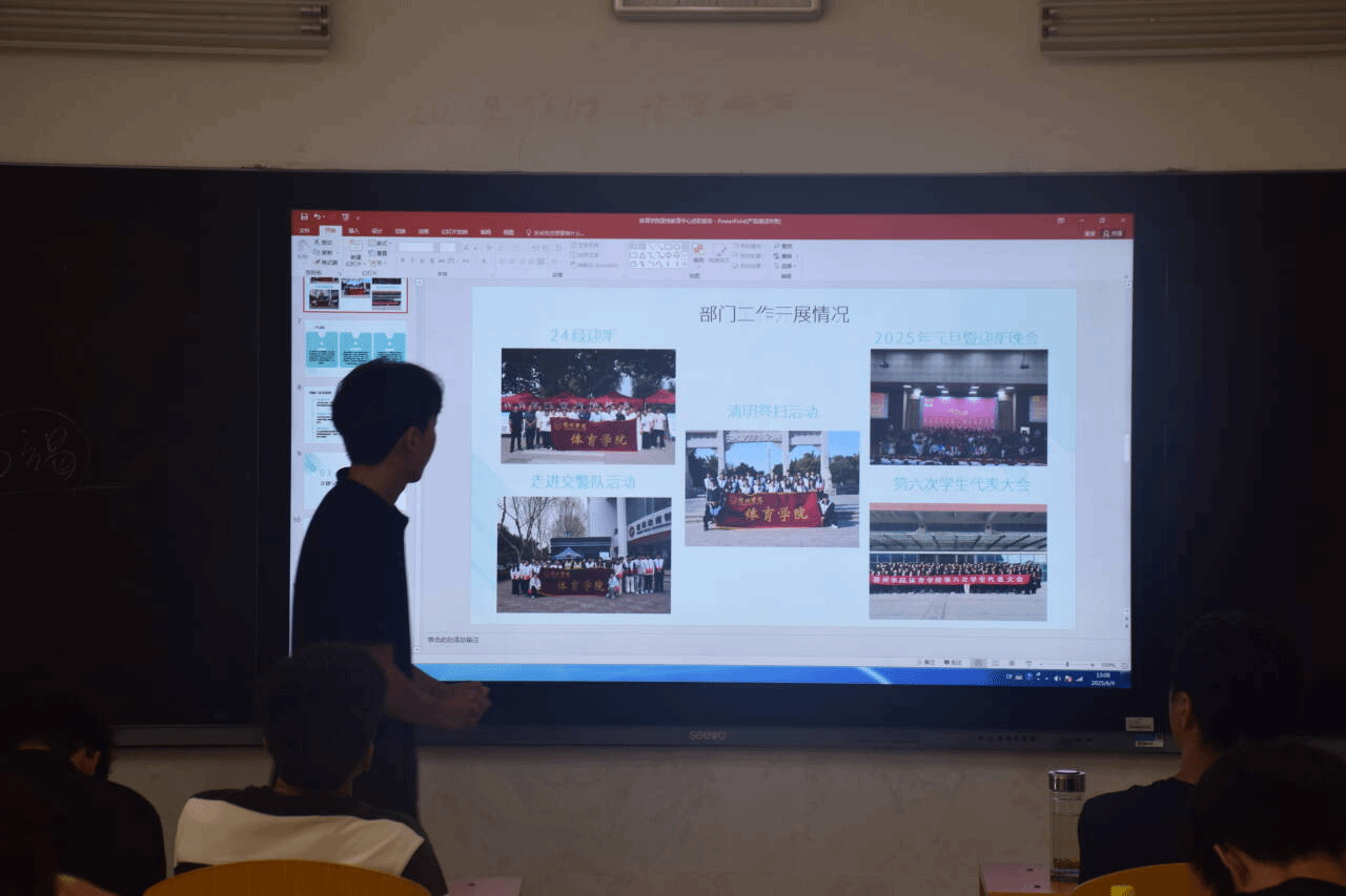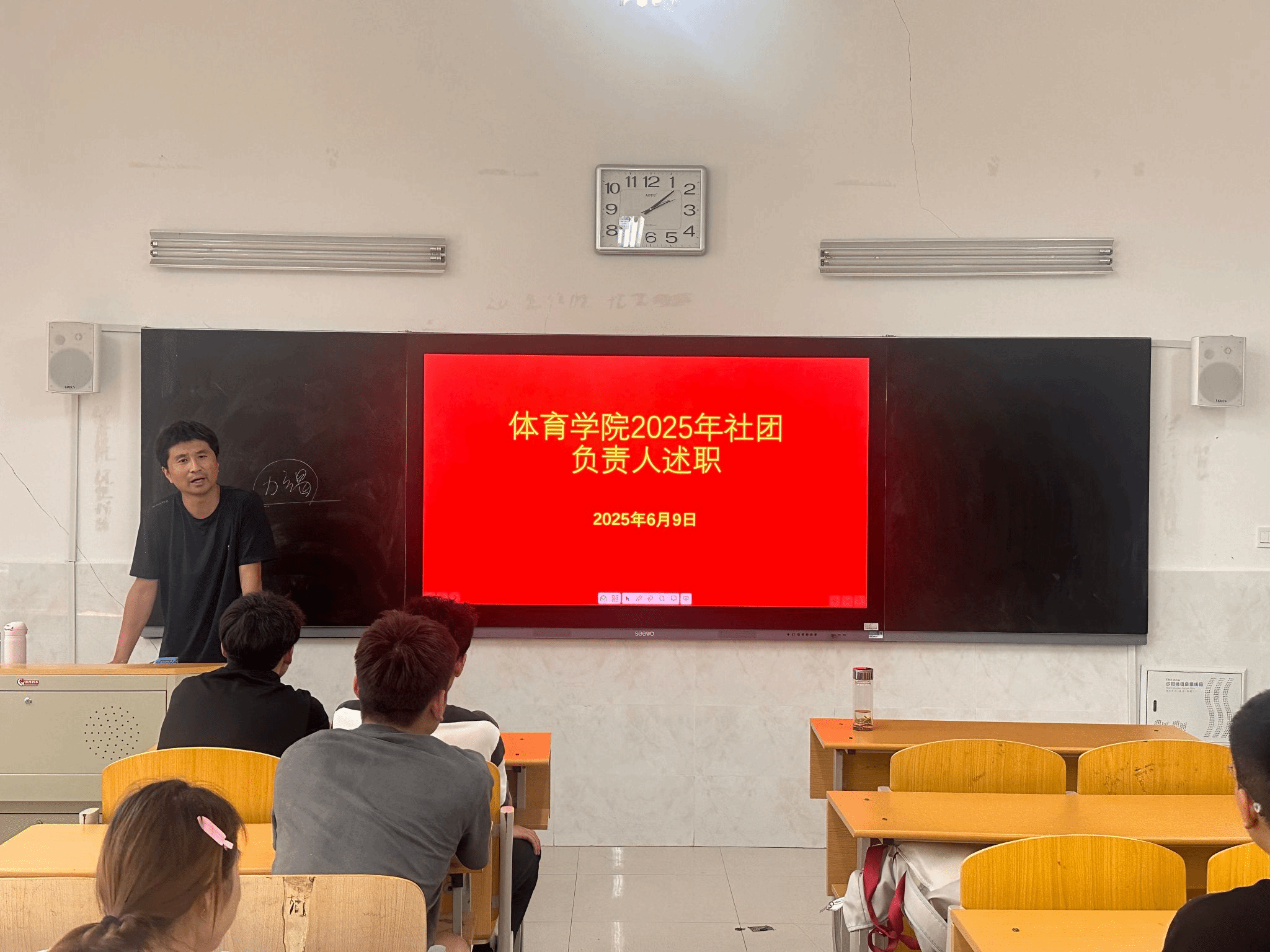 为进一步提升学生干部工作效能,强化责任意识与服务精神,体育学院于2025年6月9日中午12时30分在新体育馆A120教室举行2024-2025学年学生会、青总、社团各部长述职报告会。出席此次会议的有体育学院团委书记胡杰、学生会主席团成员以及各部门负责人。