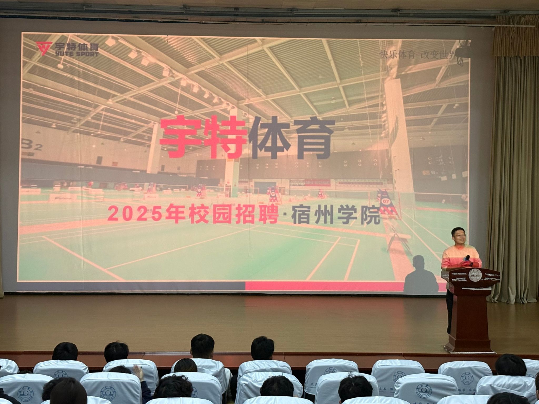上海巅峰体育发展有限公司、义乌市宇特羽毛球培训中心有限公司、无锡宝迈体育发展有限公司、宿州市埇桥区冠威体育俱乐部受邀参加我院招聘会,院领导热情接待。交流中,白院长详细介绍了体育学院的办学理念、特色成果及招生就业现状,公司代表在大学生活动中心为2025级新生详细介绍公司运营情况,热切表达校企合作意向。