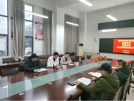 为不断深化校企合作、拓展毕业生就业渠道,2024年1月17日,体育学院开展访企拓岗促就业行动。体育学院党委书记李高、院长白明、学生事务管理科、合肥巅峰体育文化有限公司负责人、合肥乾雷体育健身服务有限公司负责人参加活动。