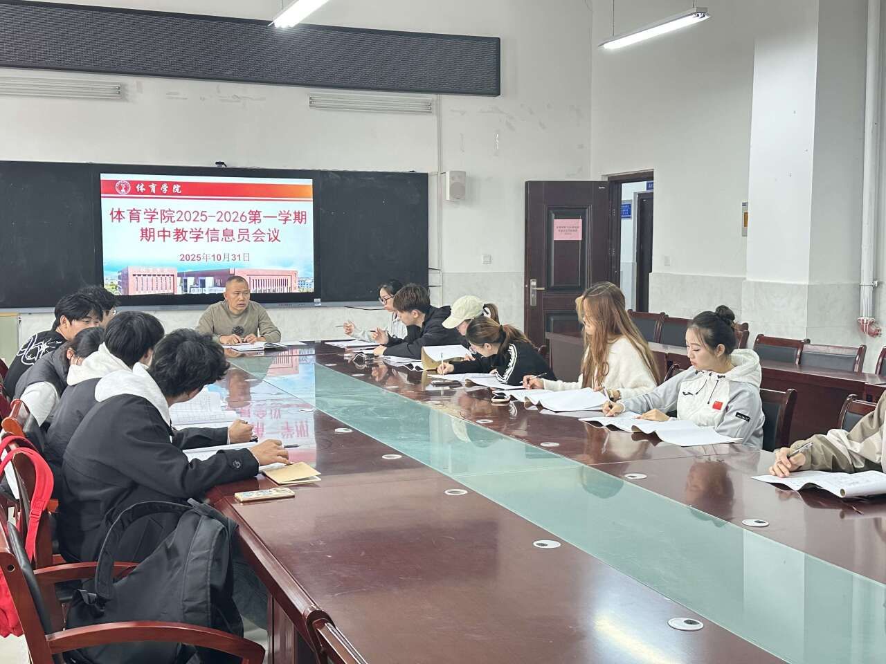 为畅通教学信息反馈渠道,及时了解课堂教学与学生学习的实际情况,体育学院于2025年10月31日中午12:30在学院会议室召开期中教学信息员座谈会。会议由王彦银老师主持,各班级教学信息员参加。