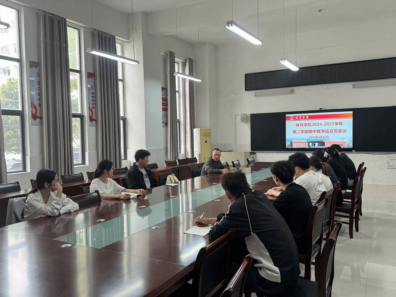 为进一步强化监控教学质量,促进教评教改,促进学校、教师、学生之间的沟通交流。体育学院于2025年4月17日12:30,在体育学院会议室召开了学生教学信息员会议。会议由王彦银主持,出席会议的有体育学院各班教学信息员。