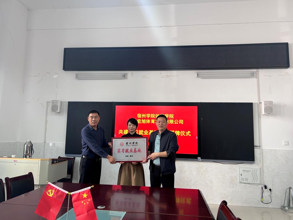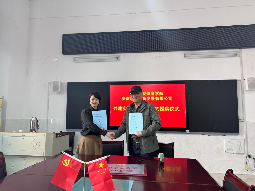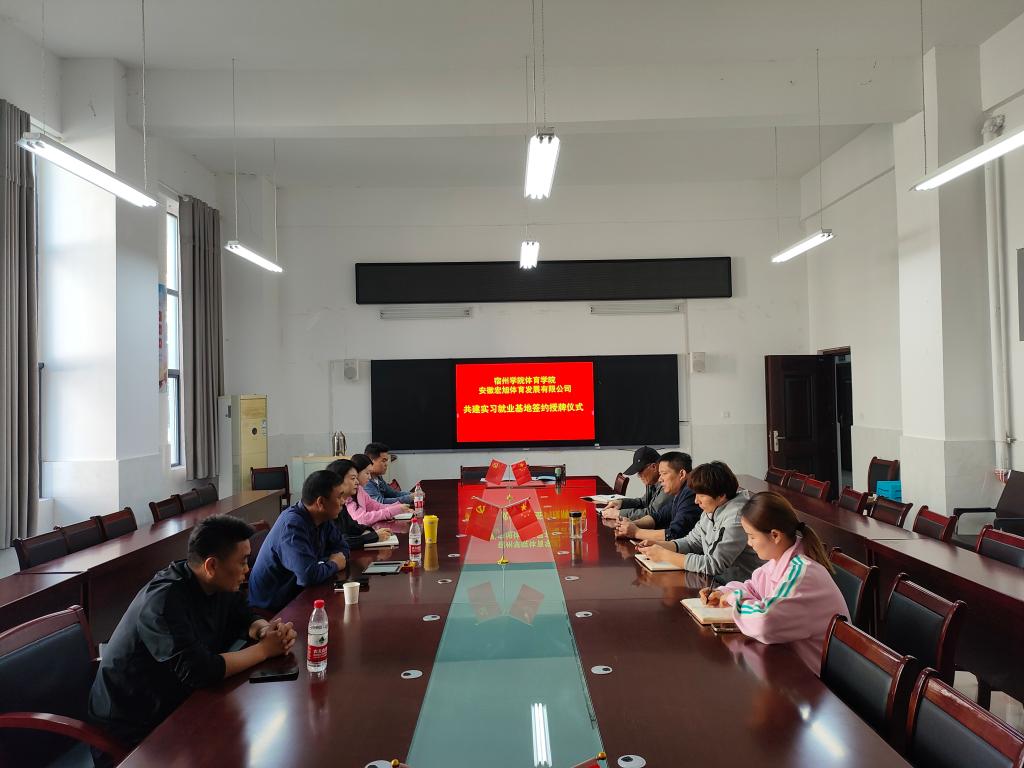 为进一步提高应用型人才培养质量,有效推进校企合作,加强实习和就业基地建设,全面落实学院人才培养目标,11月2日,体育学院与安徽宏旭体育发展有限公司举行实习就业基地签约授牌仪式。体育学院党委书记李高、院长白明、副院长陈芳芳、学生事务管理科、实习实训中心及企业负责人参加签约授牌仪式。